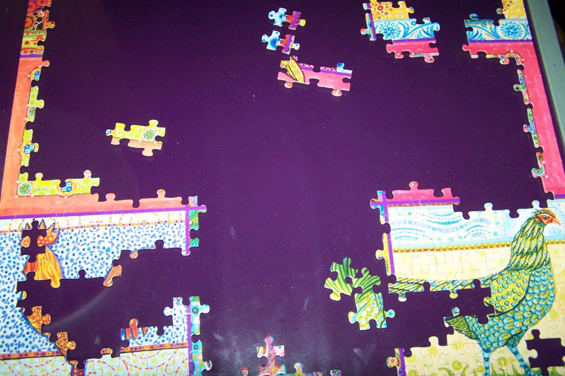 It takes up space on a not often used desk or counter top and may sit there for weeks as we try to fit it together. Everyone in the family takes turns with it, sometimes pouring over it for hours at other times just putting in one or two pieces that caught our eye. We may all work on it together or take solitary time to figure a part out. These days we are up to 500 – 1000 pieces of fairly complex pictures, not too challenging for the little ones and engaging enough for the grown-ups. The puzzle may get left for days at a time with no solution seeming possible or