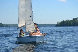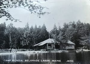 The next morning, we arrived at a little station in Belgrade, Maine and were met by the camp director who was named Johnny, the Arts and Crafts counselor Shelley, and a few other counselors. We were shown which cars to get in and were driven to camp in Belgrade Lakes. I was in the car driven by Johnny. She was a little scary to me, but I did notice that most of the other girls were laughing and joking with her and I began to relax. When we turned onto Point Road Johnny told us that there were a few steep hills to climb and that the car we were in needed some help to climb them. She told us that we should all raise our feet off the floor of the car when she gave the signal and that would help the car make it up the hill. We did as we were told, and eventually all the new girls realized this was a joke that Johnny always played on new campers. When we arrived, we were told how to find our cabins and off we went. I remember smelling the pine and the old wood of some of the buildings and thinking it smelled like perfume. There was a lake down a hill, tennis courts, a tree house, and way too much to take in all at once. I knew I would love this place from that moment on. I felt as though I had found a second home. Romney and I were both in 4th Shack which made me happy.
